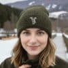 Super Soft, Warm Winter Beanie Ski Hat Featuring Embroidered Dog Design.