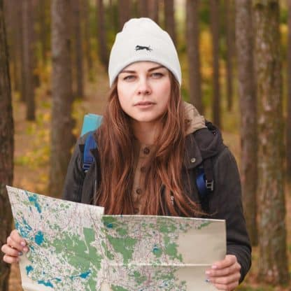 Super Soft, Warm Winter Beanie Ski Hat Featuring Embroidered Dog Design.